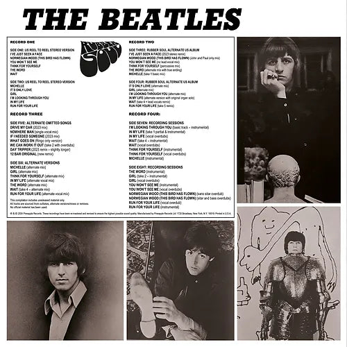 Printed in only 300 numbered copies, this amazing box set released by the Pineapple Records label contains on four coloured LPs a large amount of officially unreleased material relating to the recording sessions for "Rubber Soul", the Beatles' sixth album released on December 3, 1965 and dazzling testimony of the stylistic maturity achieved by the Liverpool four.