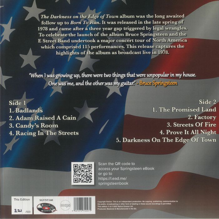 To celebrate the launch of the album Bruce Springsteen and the E Street Band undertook a major concert tour of North America which comprised 115 performances. This release captures the highlights of the album as broadcast live in 1978.