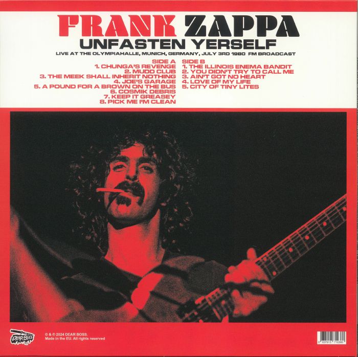 Zappa zaps Munich! 1980 live set ignites with genre-bending jams ("City Of Tiny Lites"), scorching guitar, and satirical wit. Dive into musical mayhem - face melting guaranteed.