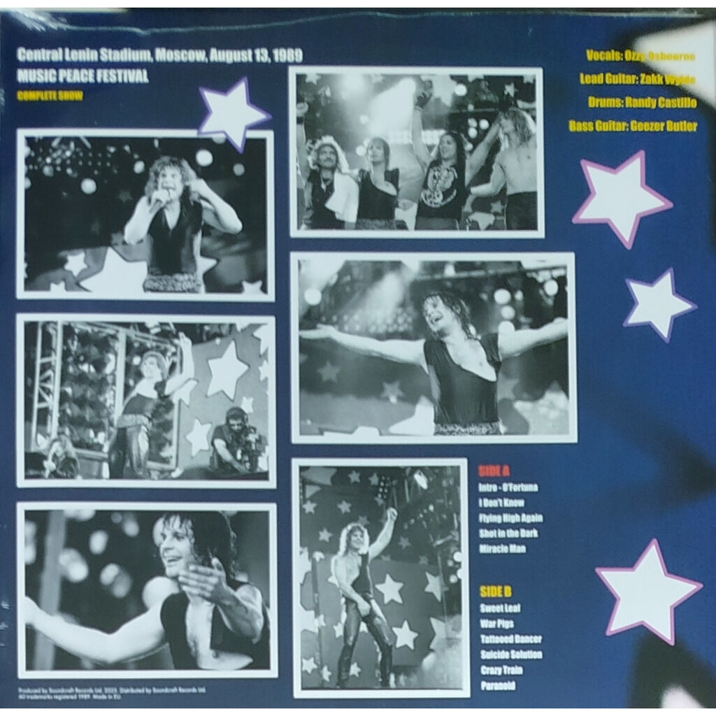 Pressed by Soundcraft on colored vinyl in a limited and numbered run (100 red copies, 100 yellow copies, and 100 blue copies), this LP reproduces the soundboard recording of Ozzy Osbourne's concert on August 13, 1989, at the Lenin Central Stadium in Moscow during the Music Peace Festival, which also featured Skid Row, Gorky Park, Cinderella, Mötley Crüe, Scorpions, and Bon Jovi.