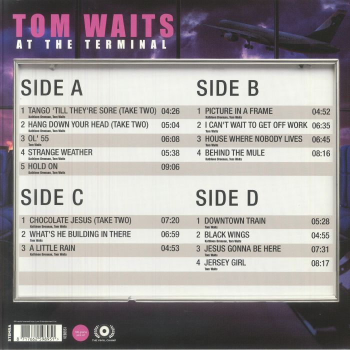 Tom Waits turned heads on April 1, 1999, when he showed up for a VH1 Storytellers session set in the unlikely - and cinematic - surroundings of Burbank-Glendale-Pasadena Airport. Not a public concert but a TV studio session staged in Terminal form, Waits delivered stripped-back versions of classics like 'Tango Till They're Sore', 'Strange Weather', 'Chocolate Jesus' and 'Downtown Train', interwoven with Waits' trademark between-song ramblings and cryptic storytelling. The show aired later that spring, although VH1 edited several songs and banter for broadcast, fans quickly circulated bootleg full-session recordings; then finally came At The Terminal, an unofficial but beloved release widely shared among fans, which finally hears officialisation through The Vinyl Champ in full-on gatefold form.
